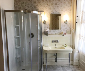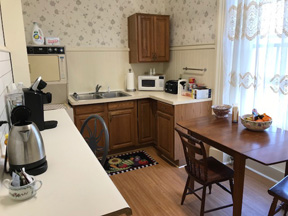 the main wing of the house. It features two Queen beds, a large living area with sofa and a private bath with a Jacuzzi Air soaking tub and a separate shower. The suite has an air conditioner and a ceiling fan as well as 12 foot ceilings. It shares the 2nd floor Kitchen area with the other two new units. You can check availability & book online here! For questions call or text the owner, Corrin Strong at 585-233-5338. You may also make inquiry by email at: hartfordhousebedandbreakfast@gmail.com |